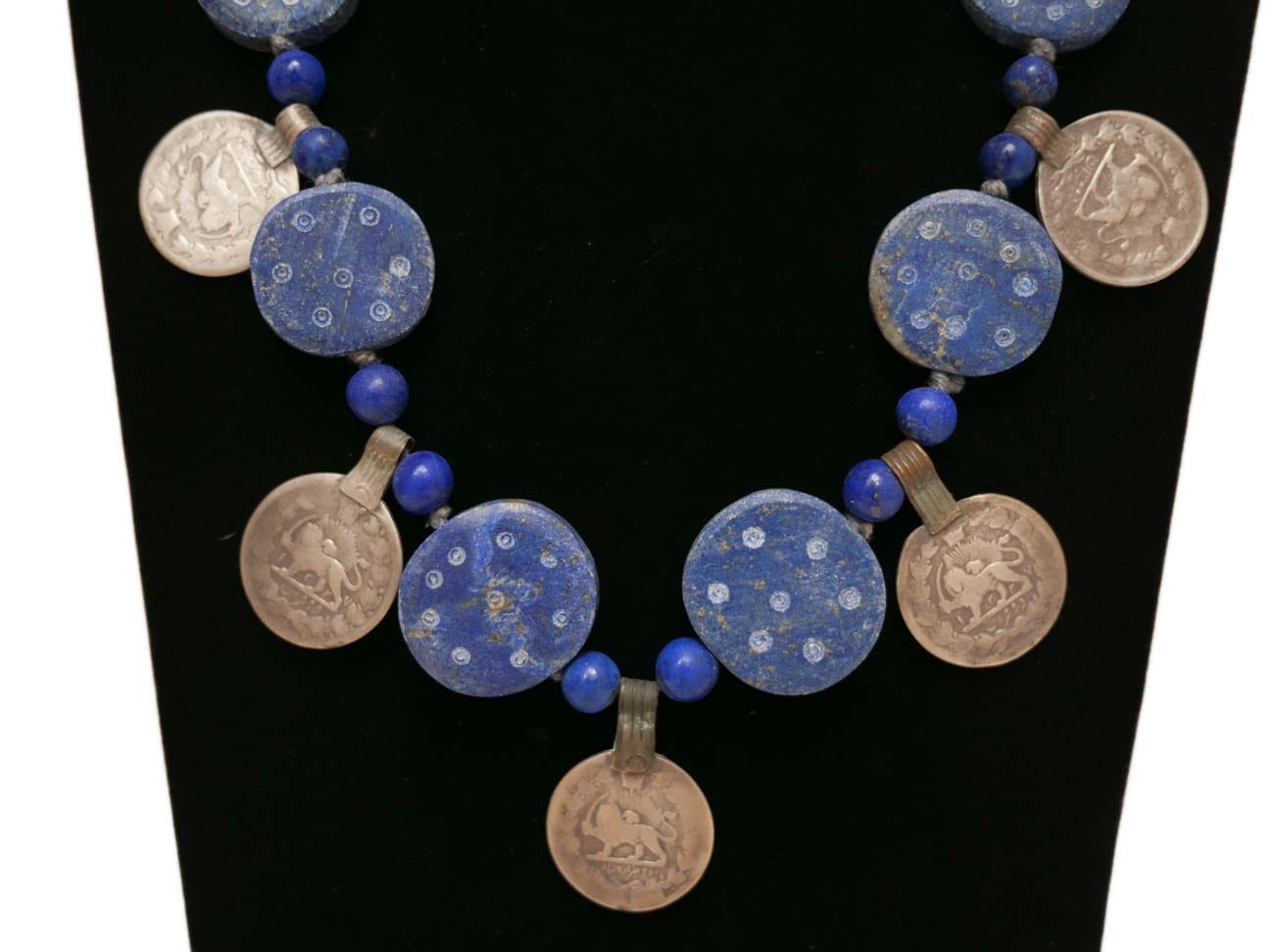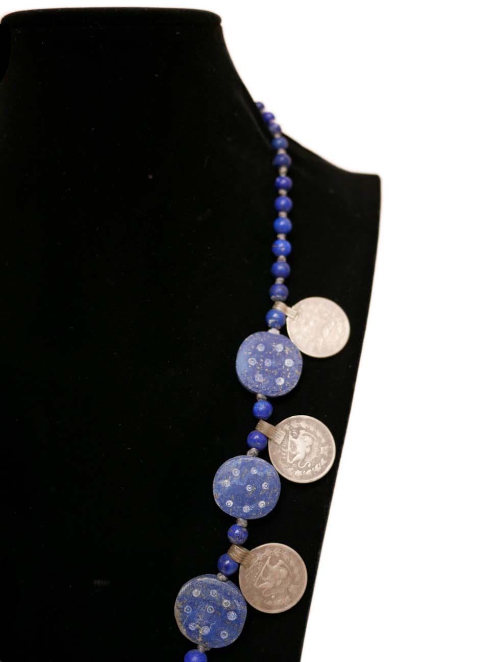 This Ancient Qajar Coin and Lapis Lazuli Necklace was made in the city of Mazar-i-Sharif in North Afghanistan.